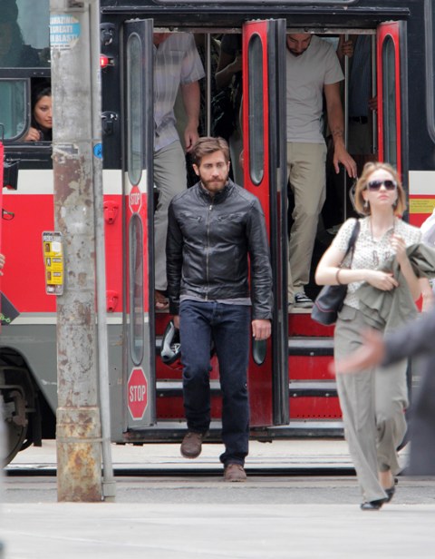 Jake Gyllenhaal did not get to celebrate the long weekend with his fellow Americans for Memorial Day. Instead he was in Toronto shooting An Enemy with acclaimed Canadian director Denis Villeneuve. Something about doppelgangers; Jakey plays two different men. Does the other character not have a beard? Melanie Laurent is one of his wives. I would totally be down with a Jakey-Melanie hookup.