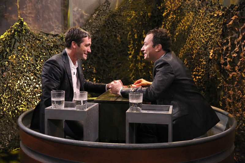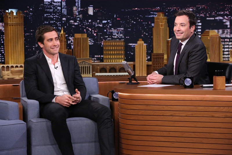 Jake Gyllenhaal is making the rounds, promoting Nightcrawler—a movie I cannot wait to see this weekend—and last night he appeared on The Tonight Show and was his usual charming self. When Jake G is on, he’s on, and very few can top it. Watching him goofing around with Jimmy Fallon is a delight. Fallon is great at setting up his guests to look good, and when the guest is already as good as Jake G, you end up with super adorable bits like the “water war”. Seriously, I dare you to watch this and not feel joy: