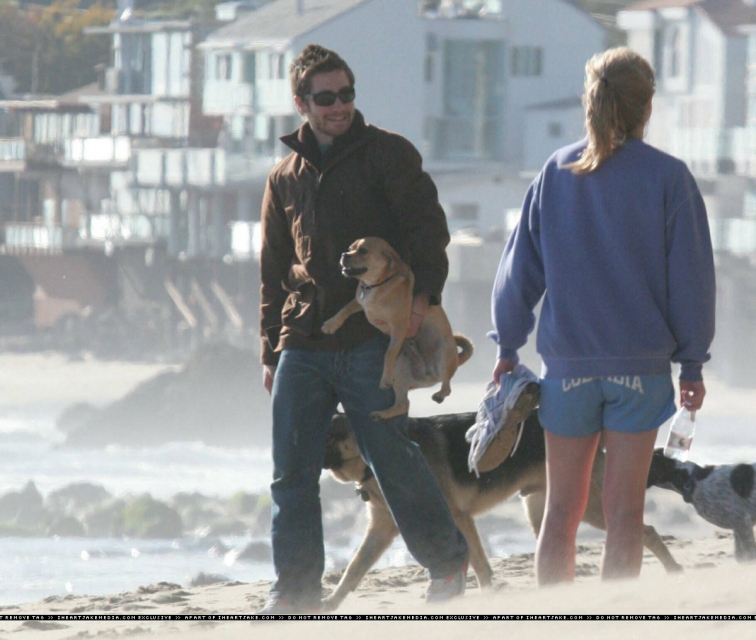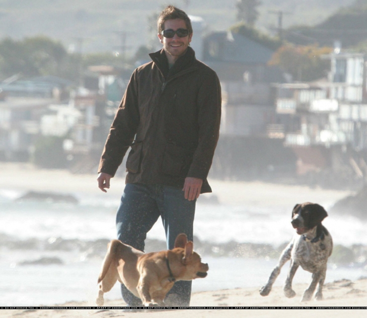 In the face of almost irrefutable evidence that Jake Gyllenhaal is in fact Toothy Tile, I am stupidly standing by my belief that he isn"t. Why stupid? Well for starters, Ted Casablanca has practically outed him without outing him and these gorgeous photos of him frolicking by the sea with his pups and an unnamed companion are just too good to be straight. Anyway, let"s address a couple of Jakey related topics while we"re at it. First - the whole Kiki showdown that was promised and that so many of you emailed me about. Never happened. In fact, Kiki Dunst was suspiciously absent from Oscar night even though we were all told to expect her. I have no idea why and I"m not even going to bother speculating about what she"s up to but suffice to say, I was greatly disappointed. As for those reports of Jakey getting it on with Keira Knightley - careful what you read. To my knowledge she"s still pretty gaga over that hunk of British hotness Rupert Friend and given their romantic beachside promenade a week pre-Oscar, I"m hesitant to buy into any J&K reports, especially since we can"t even agree on whether or not he actually prefers p*ssy.