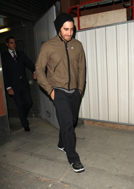 Jakey Gyllenhaal had dinner last night at Cipriani and left via the back door, hoping to elude photographers. Not successful.