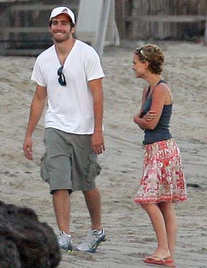 Speaking of publicity stunts…here we go again. As you can see, Jake Gyllenhaal and Natalie Portman were snapped at the beach the other day, inspiring renewed interest in a possible romance, especially since he was also photographed a few weeks ago giving her flowers on her birthday. I can see why it would be tempting to believe this. They do make a ridiculously adorable couple, don"t they? Unfortunately, I"m compelled to tell you again what I told you back then. They are friends and friends only. Because Natalie is involved in a serious relationship with Gael Garcia Bernal, with whom she shared an apartment in Toronto during the Wonder Emporium shoot. What this is, my fellow gossips, is a public ruse to throw people off the private truth, to protect her real love from prying pappies and to conveniently "confirm" Jake"s heterosexuality as well. As for that chronic mystery - no, I still don"t think he"s gay. And for what it"s worth, none of my sources think he"s gay either. They do however think that Vince Vaughn is. But you"ve heard that rumour already, right? Photos via Us Weekly