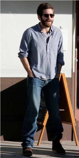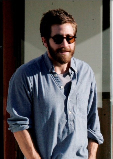 Very low profile the last few months, right? Maybe even all of last year after Source Code came out. Here’s Jakey with some friends after sushi yesterday in Hollywood looking like he hasn’t worked in a while. I’m not saying that to be a bitch...yet. I’m saying it because that’s what we all do when we don’t have to go into the office: we don’t shave, some of don’t shower (this does not apply to me), we wear loose pants, and it’s glasses only, no contact lenses.