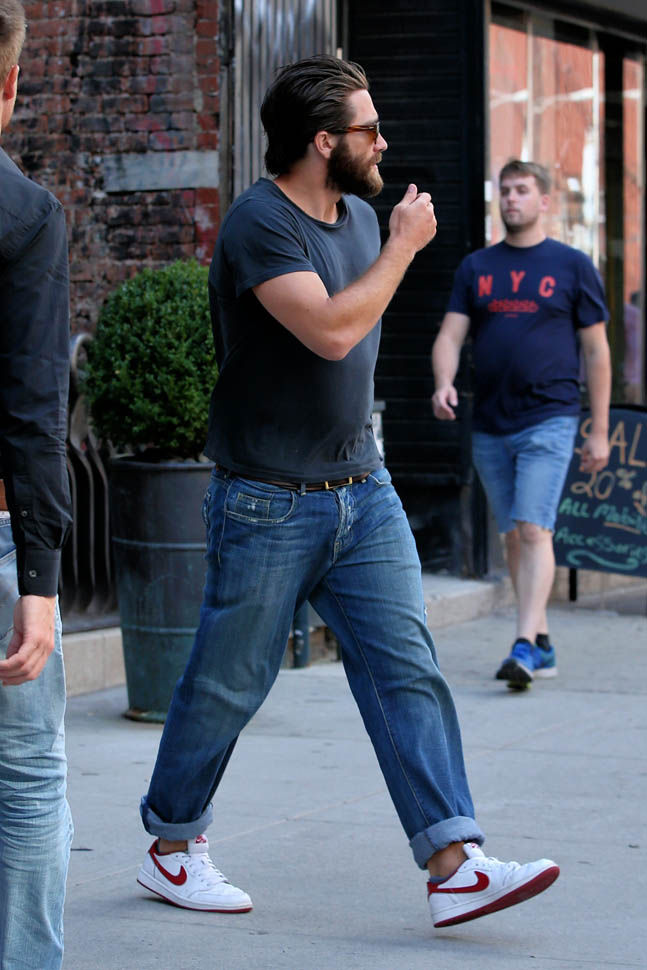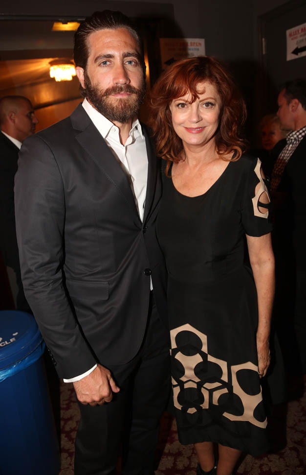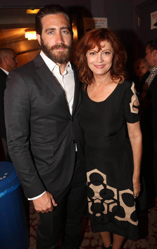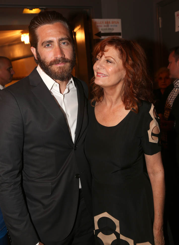 Attached - Jake with Susan Sarandon at the after party for Broadway's Hamilton last night and leaving his NYC hotel the other day.