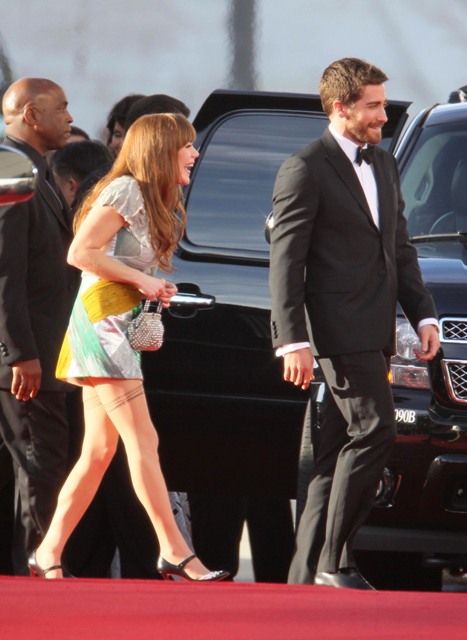 But please, Jakey is not a stranger to the game. You bring a girl, especially an old gf, and people will talk. Do you want people to talk? We are talking. Everyone is talking now. I dislike this move. I dislike a lot of his recent moves…although he and Jason Segel had a bro down moment on the E! live show that was pretty f-cking cute.