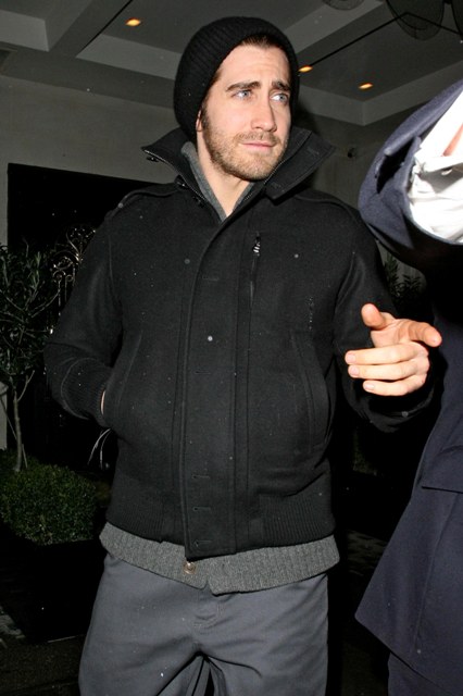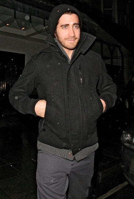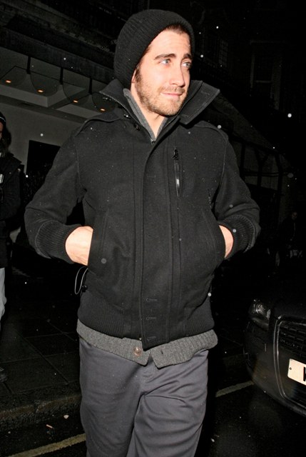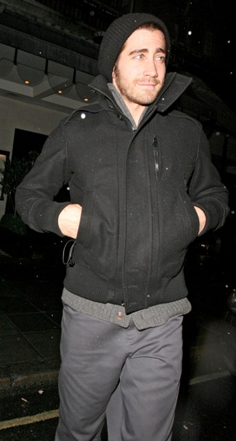 Here’s Jakey G in London last night after eating at Scotts restaurant. Seriously. Is the Prince of Persia the longest shoot in the history of Hollywood, or what? He’s been there forever, no doubt eager to return home to Reese in LA.