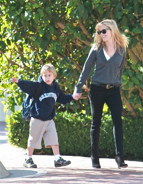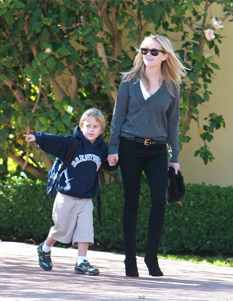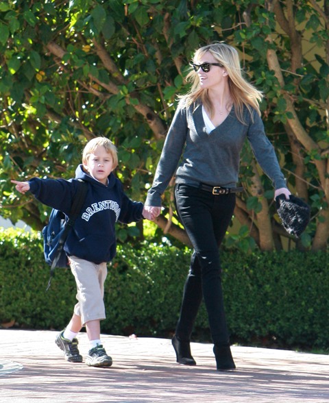 However, as noted by People, Maggie is tight with Reese and Reese did attend a private screening of Crazy Heart on Monday at CAA in support of her friend. While Jakey declined photographs with Maggie last night however, Reese was shot in the afternoon hanging out with her son Deacon. Am told the paps and tabloids are trying to follow both Reese and Jakey very closely these days with limited success.