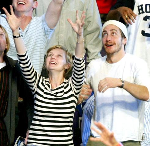 As for these photos - I searched his name on the photo database just now hoping to find new pictures to use and for some reason, these old ones with Kirsten Dunst turned up that I don’t remember seeing before. It was February 2004. They were at Staples Centre for the NBA All-Star Game trying to catch t-shirts that were being thrown into the crowd. I find this really endearing. She was a horrible bitch to him - and Sarah from Cinesnark can fill you on those details another time - but for a while there I loved them so much.