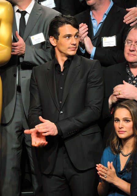Attached – Franco at the Oscar Nominees Luncheon earlier this week. He looks really good. And I LOVE that Annette Bening is on Jeff Bridges’s lap. She’s been so easy and free this entire campaign, so much more relaxed than Natalie Portman, enjoying it the whole way. I wonder if that’ll mean something later on.