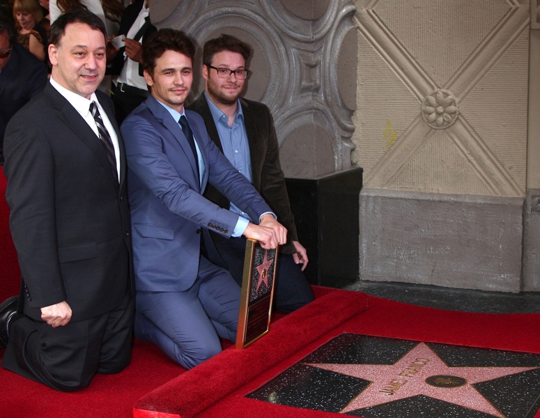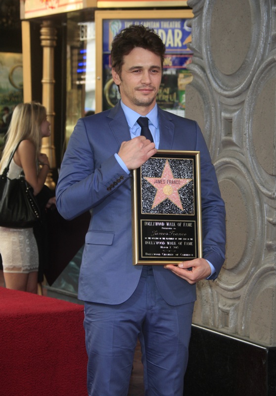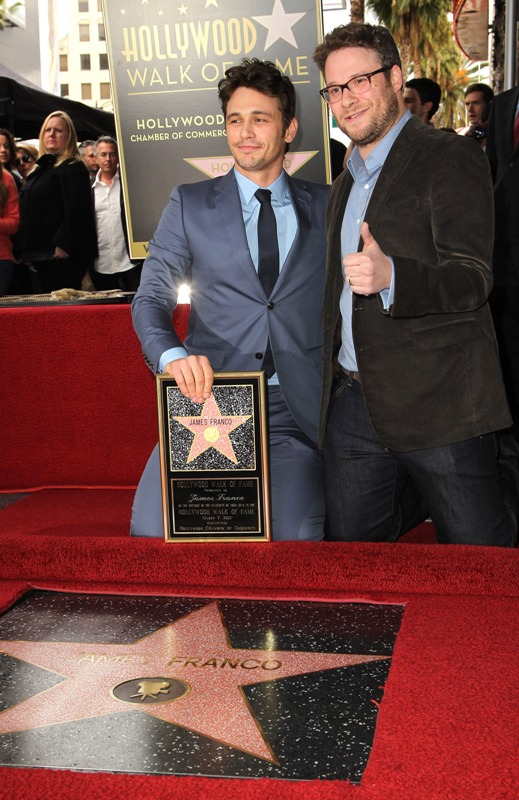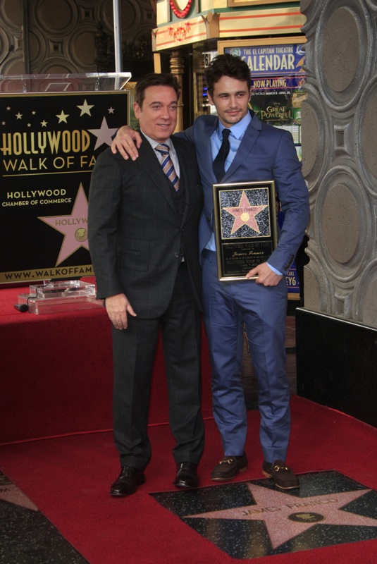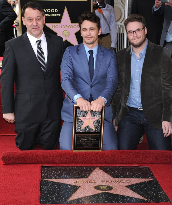 Here’s Franco yesterday receiving his star on the Walk Of Fame, joined by his mother, Sam Raimi, Seth Rogen, and mega agent Kevin Huvane, one of the top dudes at CAA. Franco is clearly a prized commodity there.