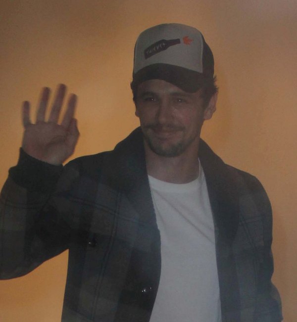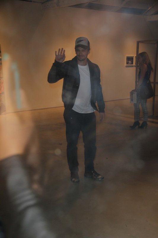 Here’s Franco leaving a book signing yesterday. The book is called Moving Pictures / Moving Sculptures: the Films of James Franco. It’s about James Franco, obviously. But also about how James Franco is James Franco. I think? This is how it’s been described: