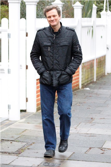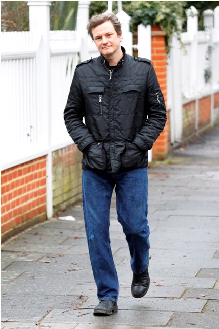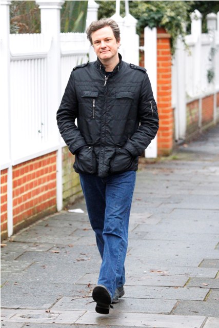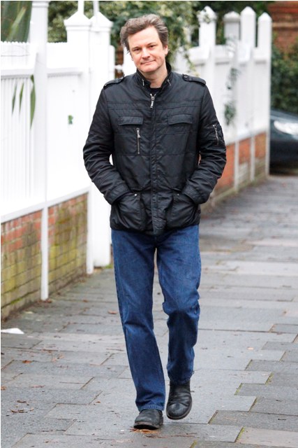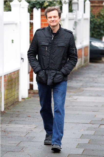 Attached – Colin Firth strolling around London today. He’ll be in LA by the weekend again for the SAGs.