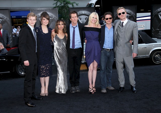 Here they all, in New York last night at the premiere, some arriving in vintage cars. I’ve decided: I just don’t think I’ll ever grow a Michael Fassbender quiver. Sorry. Also… January Jones appears on every blog like every day. Is it just me? Because I could not care less about her, pregnant or not, unless Zach Galifianakis is throwing sh-t at her in which case… sure, but maybe for a 5 minute chuckle and then it’s What’s Next? She’s carrying around a child with a secret sire who may or may not be married and famous and STILL it barely registers. I’m telling you – when the person is beige, even the scandal turns beige.