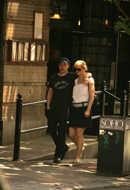 James and Anne-Marie Duff in Soho on Saturday, hand in hand, arm in arm.