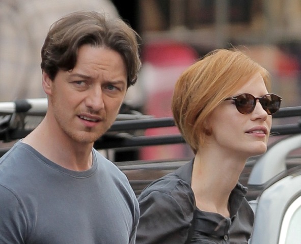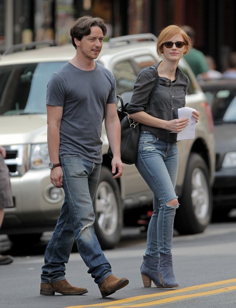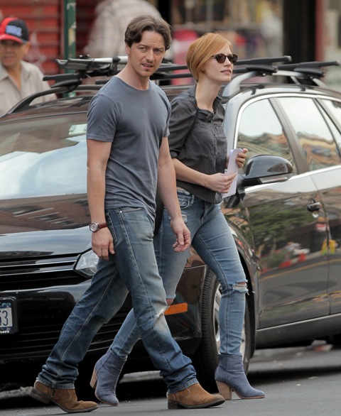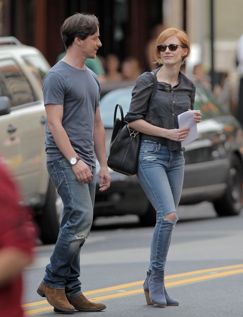 He’s lifting it. He’s lovely. He’s gorgeous. He was in New York yesterday shooting The Disappearance of Eleanor Rigby with Jessica Chastain.