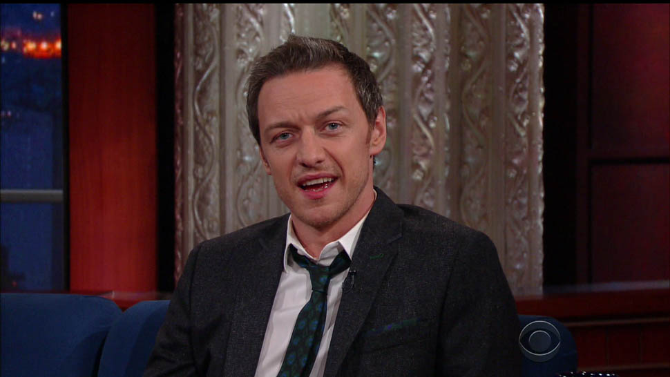 Attached - James McAvoy promoting X-Men on The Late Show with Stephen Colbert last week.