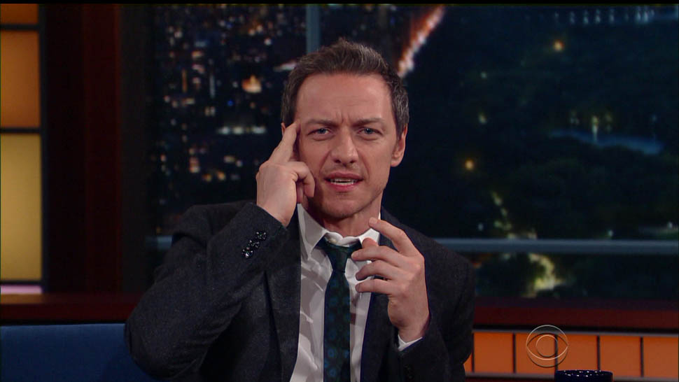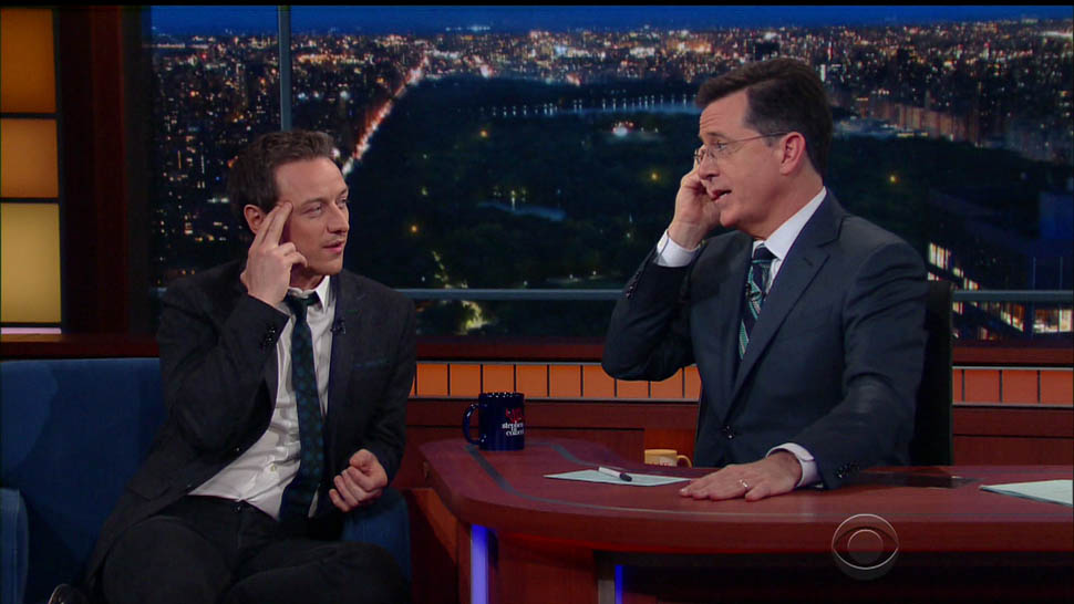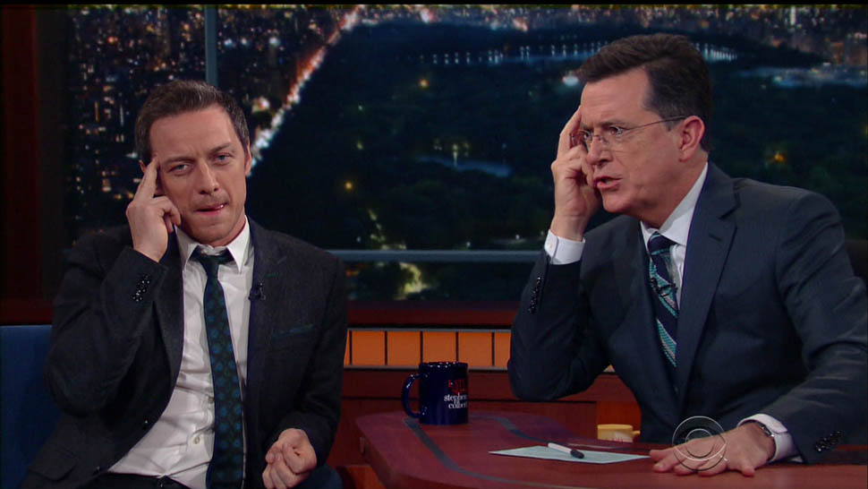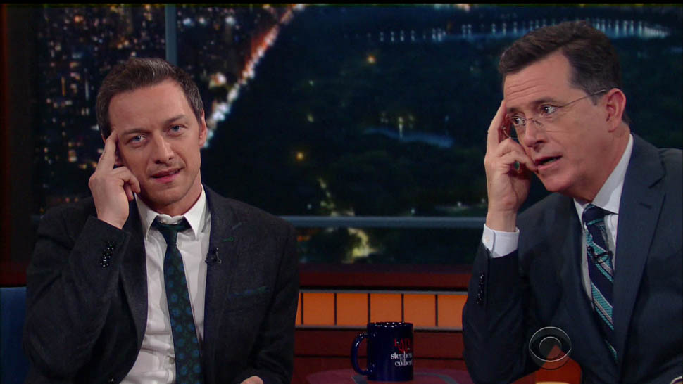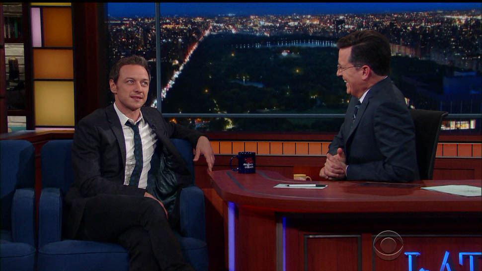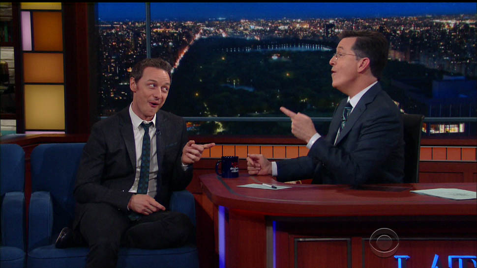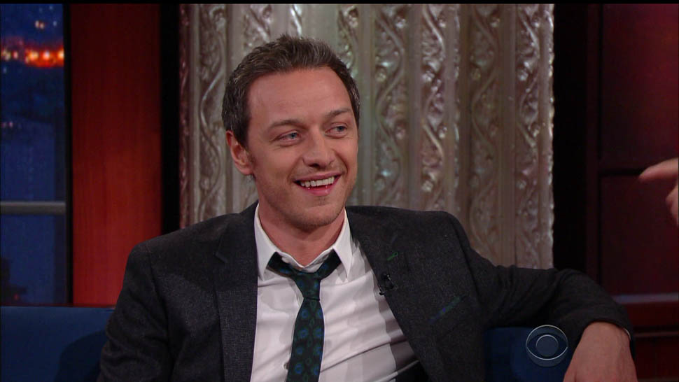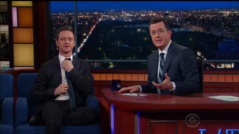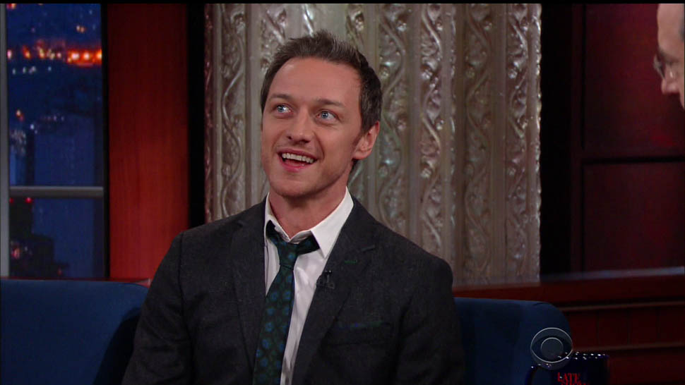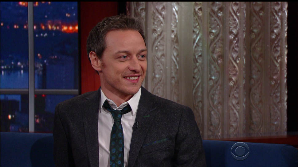 Attached - James McAvoy promoting X-Men on The Late Show with Stephen Colbert last week.