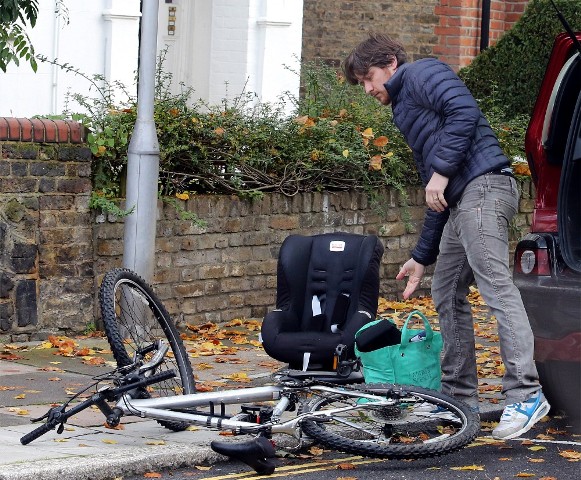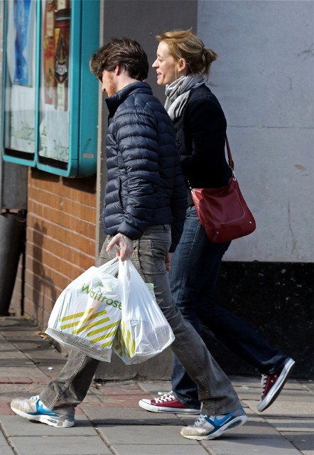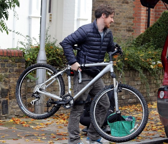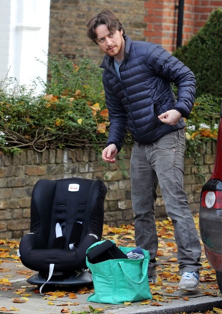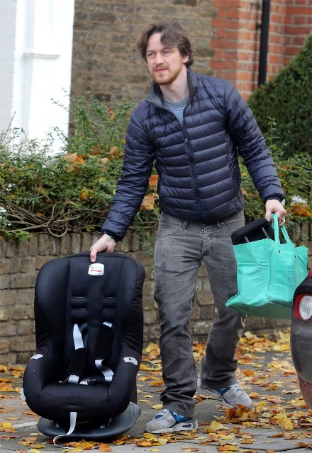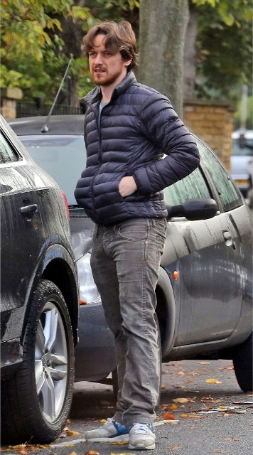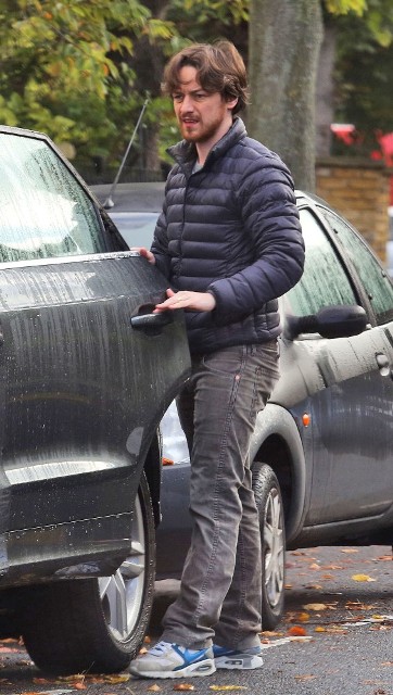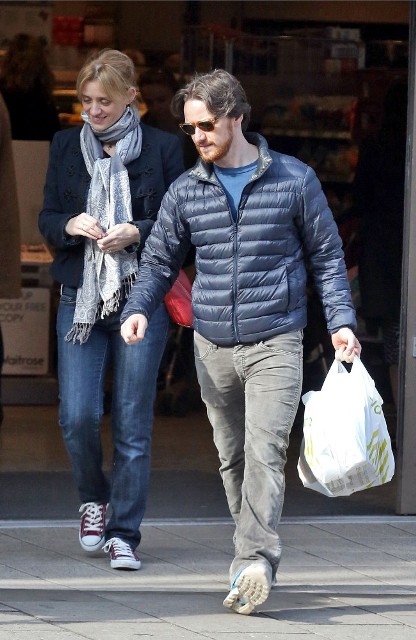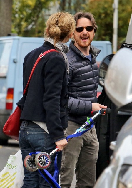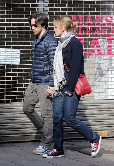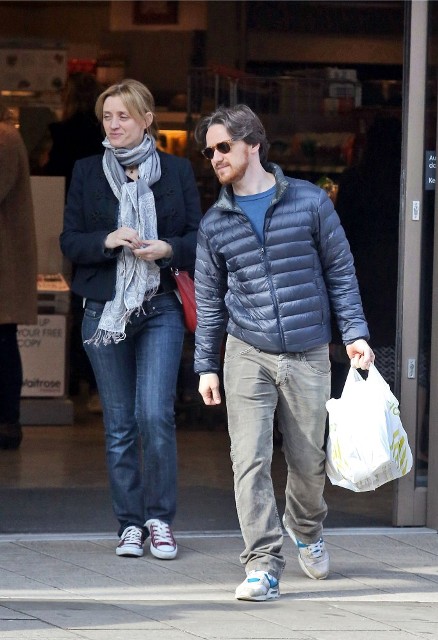 New photos of James McAvoy and -- bonus! -- Anne-Marie Duff is with him. Here they are running errands in London yesterday.