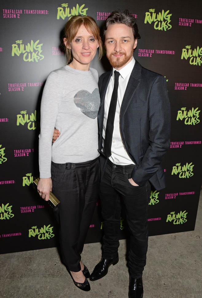 James McAvoy was joined by Anne-Marie Duff last night in London at the after-party following the gala performance of The Ruling Class. I love them, I love them, I love them. And every time I see them, I feel joy and relief. Mostly joy. Joy for them now because they are celebrating. They are celebrating the success of the play. And James’s already acclaimed performance.