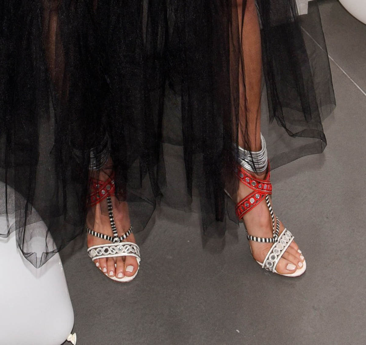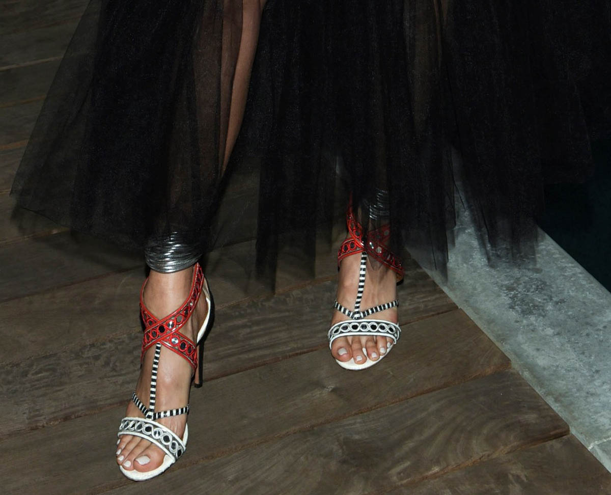 I don’t know if I’m into the shoe choice though? It matches, picks up all the colours, sure, and I get that with the sheer you want to show some leg. But it would have been super next level if she had gone with a pair of combat boots to mix the softness of the skirt with a bit of hardness at the bottom.