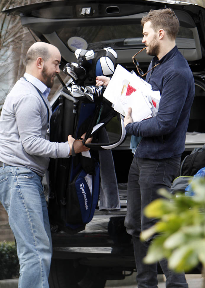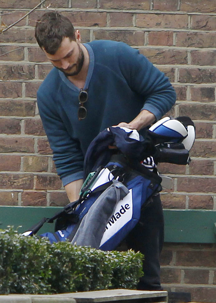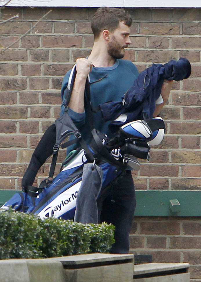 Jamie Dornan went to the range in London the other day to work on his swing. Incentive to sign on to more Fifty Shades movies? You can golf all year round in Vancouver where they shot the first movie. Still no definitive word on that yet though, right? There are all kinds of random reports here and there about how he and Dakota Johnson are getting more money and are recommitted… but there’s been no confirmation about a director. And, well, Sam Taylor-Johnson, you’d think, given the box office success of the film, would give some indication that she wants it, if she actually wants it?