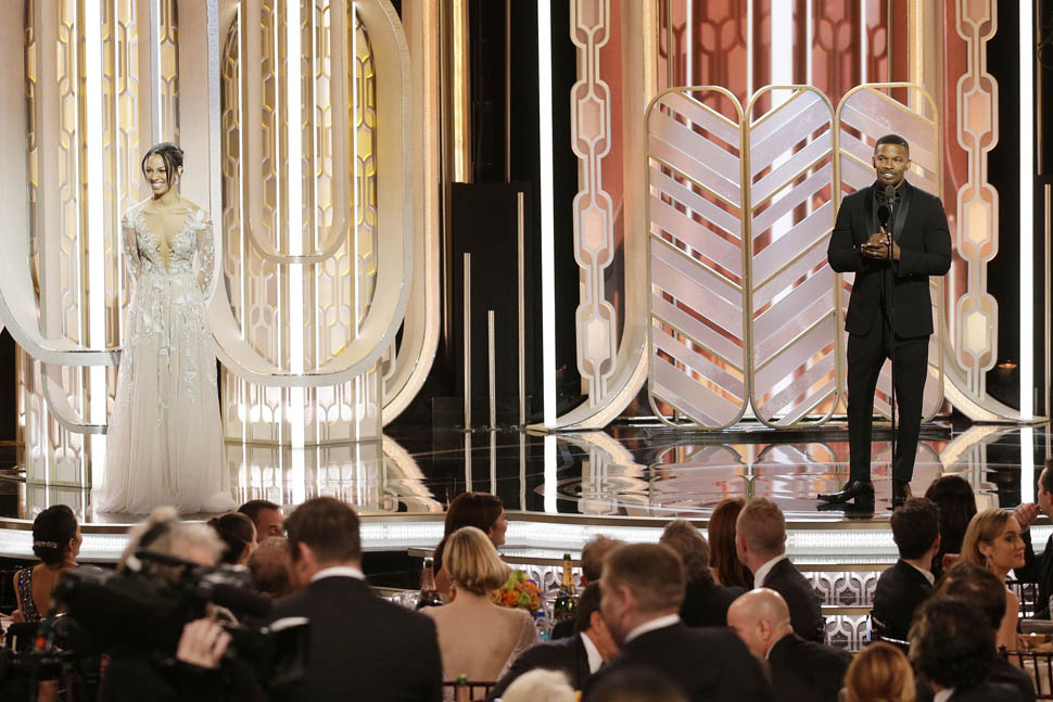 Jamie Foxx’s daughter, Corinne, was Miss Golden Globe this year. And his was bursting with pride when he introduced her to the audience. While presenting Best Score though… well…