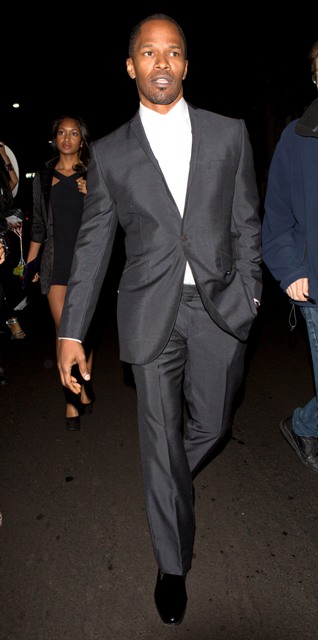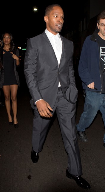 Attached - Jamie Foxx leaving Mr Chow last night. Well done, making new images available just as a major professional announcement is released.