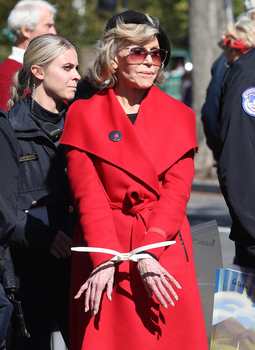 Jane Fonda announced recently that she’d be living in Washington DC for a few months to protest climate change. She intends to get arrested every Friday for “Fire Drill Fridays”. When it first happened, I was wondering how she’d keep up the interest week after week. The first time would be intriguing and less so the second – by the fifth time, would anyone still care? Especially since she seemed to be wearing the same red coat on the “fire” theme.