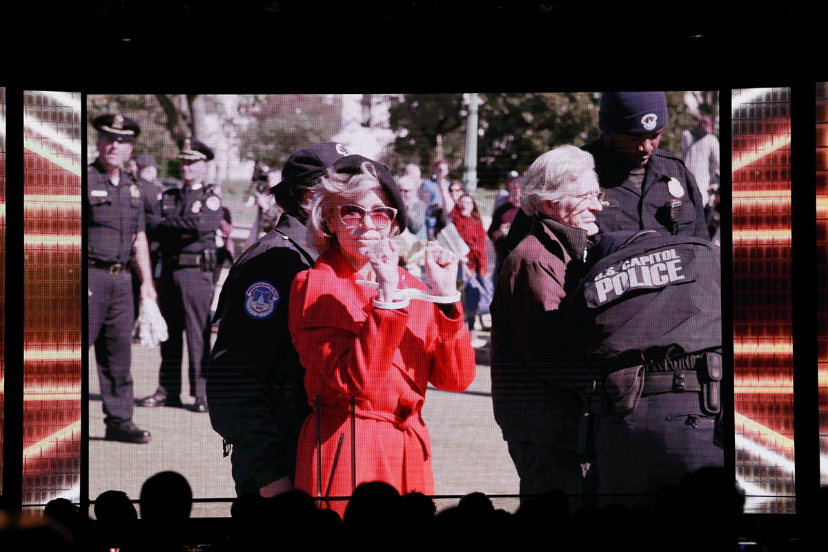 If so… who’s next? Will it be a Book Club reunion featuring Mary, Candice Bergen, and Diane Keaton? Will Lily Tomlin show up? Imagine if there ends up being a Monster-in-Law reunion and Jennifer Lopez and Wanda Sykes are there?! This is probably a stretch, considering JLo is campaigning for Oscar right now and she probably doesn’t want any distractions – unless they’re good distractions. You know, an argument could be made that accepting Jane’s invitation to get arrested in service of the planet. Did you see the video that was played during the BAFTA Los Angeles Britannia Awards this weekend? Jane obviously couldn’t be there so she recorded her acceptance speech WHILE SHE WAS GETTING ARRESTED: