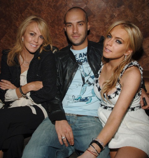 Anyway, here are mother and daughter flanking Lilo’s recycled love interest Calum Best who inexplicably turned up to support her. The two apparently couldn’t keep their hands off each other last night at the Nylon Magazine party. He is SO not attractive. But these days, I guess, neither is she.