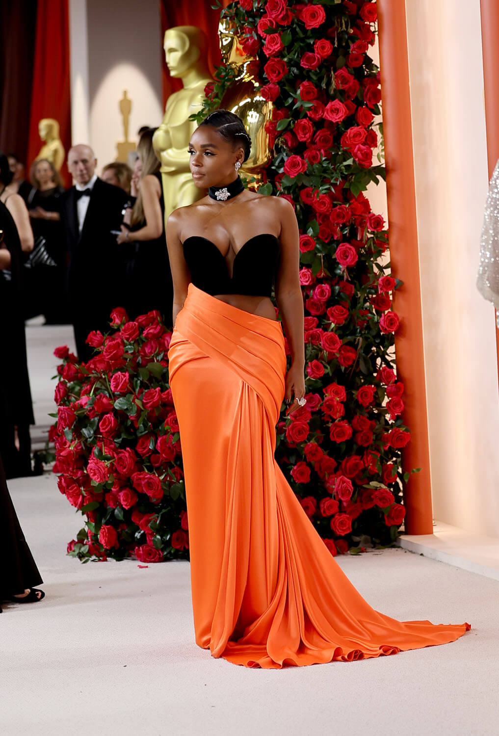 The issue, for me, with Janelle’s choice is that in motion, when she was walking around, and while she was on stage presenting, is that she didn’t look entirely comfortable. The bustier seemed to be sitting lower than it should have at various points, and the skirt, while it did look good in some photos, read awkwardly unbalanced in others. But mostly, in comparison to some of her previous style moments, there was just no excitement or life to it in person. By her standards, this one doesn’t rank. She proved that herself with the choice she made for the Vanity Fair party.
