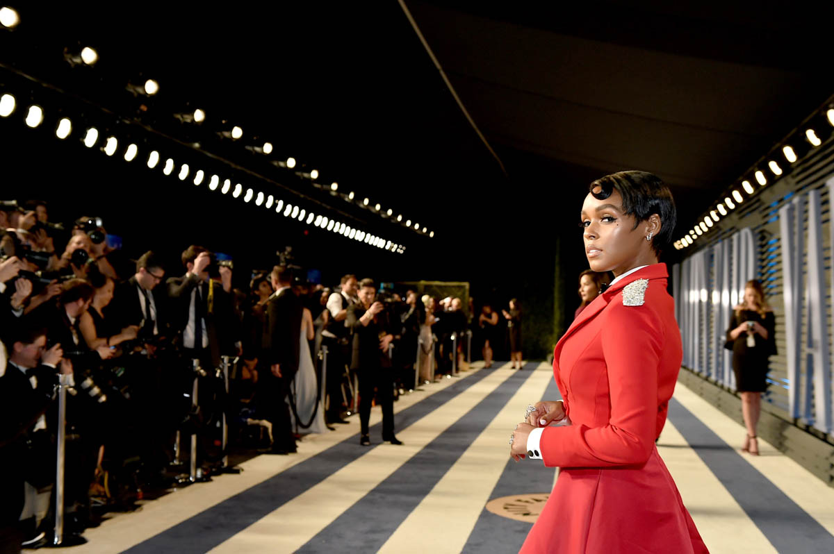 Look at this picture Janelle posted from the Vanity Fair Oscar party with Deray, Regina Hall, Rashida Jones, Gabrielle Union, Donald Glover, Lena Waithe and Chuck Lightning.
