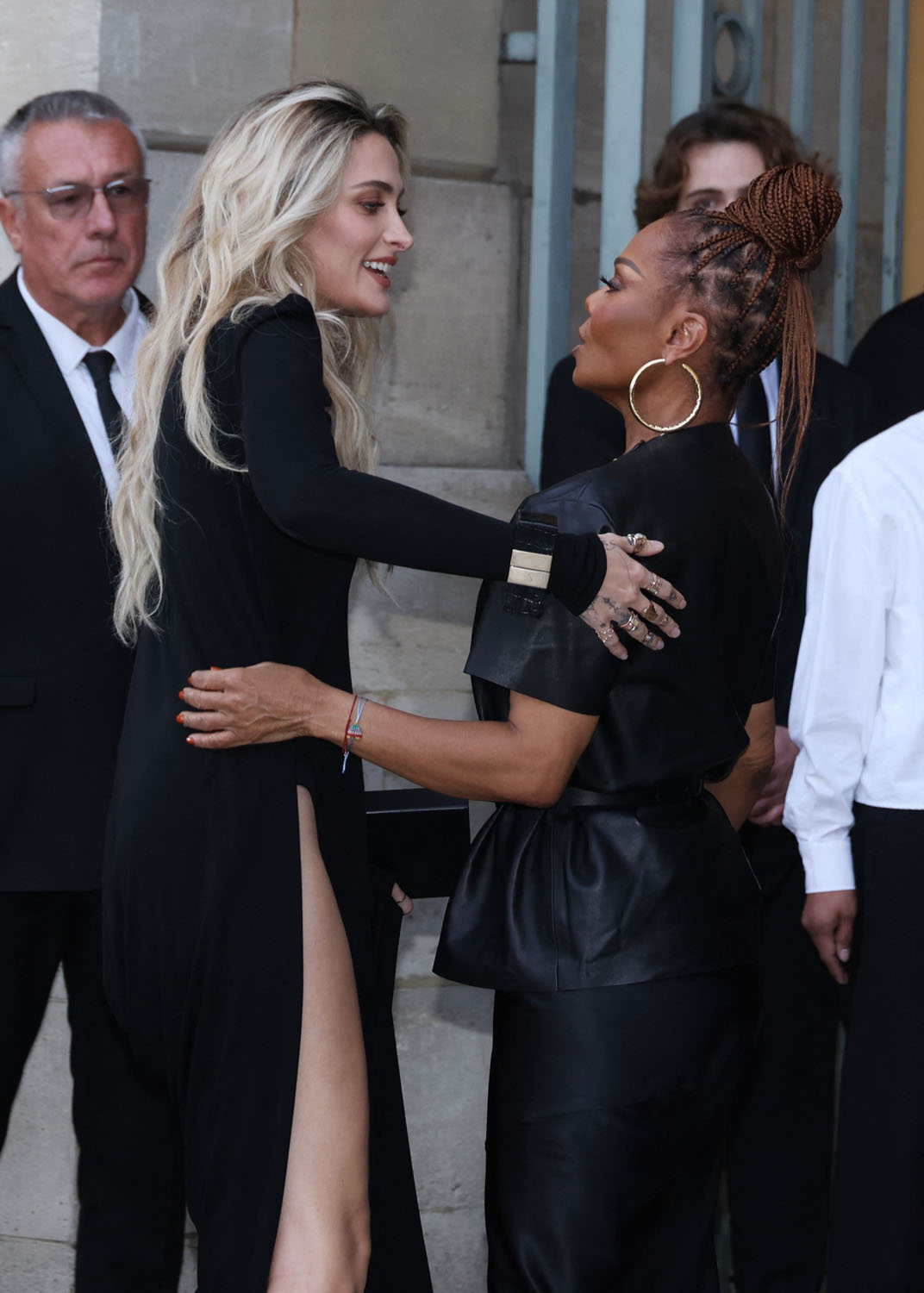 Pamela Anderson is in Paris for Tom Ford. The new hair is copper and it looks incredible. The slicked back shaggy lob, so good.