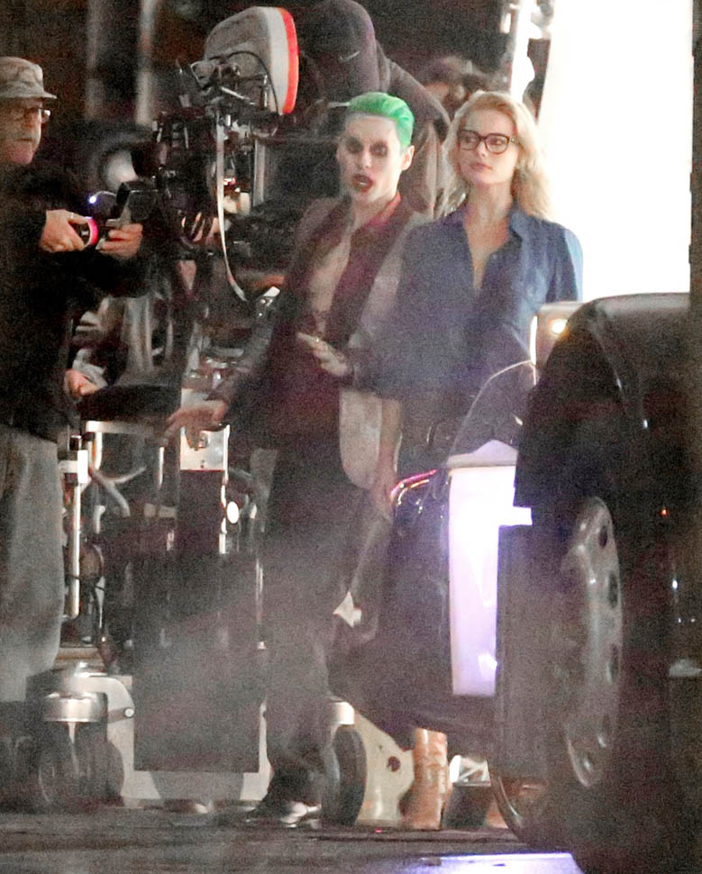 Harley, meanwhile, is dressed in normal clothes, looking like her pre-villainess days as Harleen Quinzel, a psychiatrist who falls in love with The Joker and has her life systematically destroyed by the man she loves. Their relationship functions as an allegory of domestic abuse, and Leto can be seen striking Margot Robbie in-scene, which means that subtext is making it into the movie. It’s disturbing, but it’s also one of her best character arcs as she pulls away from The Joker until finally dumping his ass. I’d be super into Suicide Squad if the subtext of the movie is a victimized woman regaining her independence and leaving her abuser. I would watch Harley Quinn: Fury Road a hundred times in the theater.