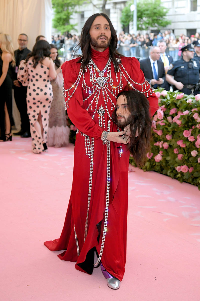 I’m cheating by calling Jared Leto a twin – he carried around his own head. Maybe that would be irreverent and serious and ridiculous if we hadn’t seen it before – Gucci did it in Fall/Winter 2018. A gag that is only a year old is not Camp.
