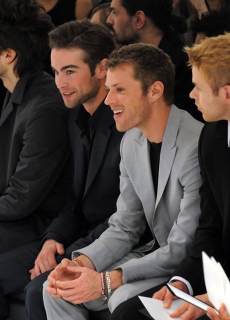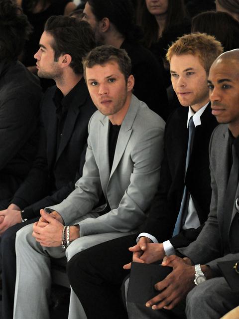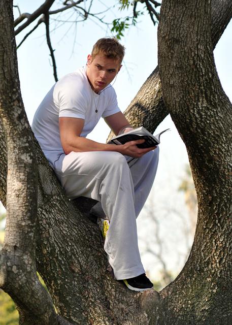 Let’s start from right to left. It’s Jared Leto, big ass poseur hair, pretending people still want to make movies with him. Next to him Chace Crawford, trying to age himself with some stubble, trying not to be the poor man’s TV Zac Efron, trying not to be Bailey Salinger. And then it’s Ryan Phillipe’s beat-me face. Isn’t that a beat-me face? So smug, like we’re back in 2002 and he and Reese are still kind of the same. Not the same at all. And finally Kellan Lutz whose hair problems extend beyond the bad wigs of Twilight into real life, who can’t even land a role that requires not much more than grunting (Conan the Barbarian), and who, in the ultimate of pathetic moves, on the level of Phoebe Price, actually POSED IN A TREE the other day pretending to read a book halfway through a walk with his dogs.