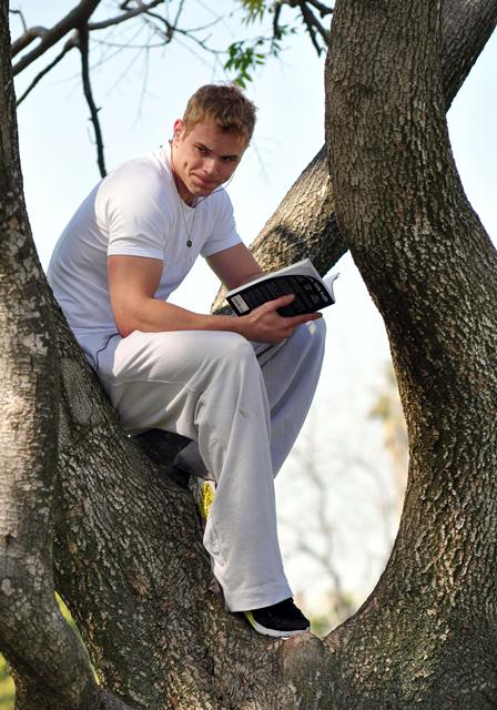 Oh look, the paps are following me. Let me just climb up on this branch and catch up on my book list. FONTRUM. SO MUCH FONTRUM. At this point, I can’t even see his face without feeling embarrassed for him. I’m on Kellan Lutz auto-cringe. Loser.