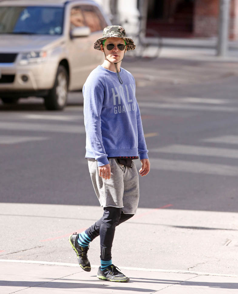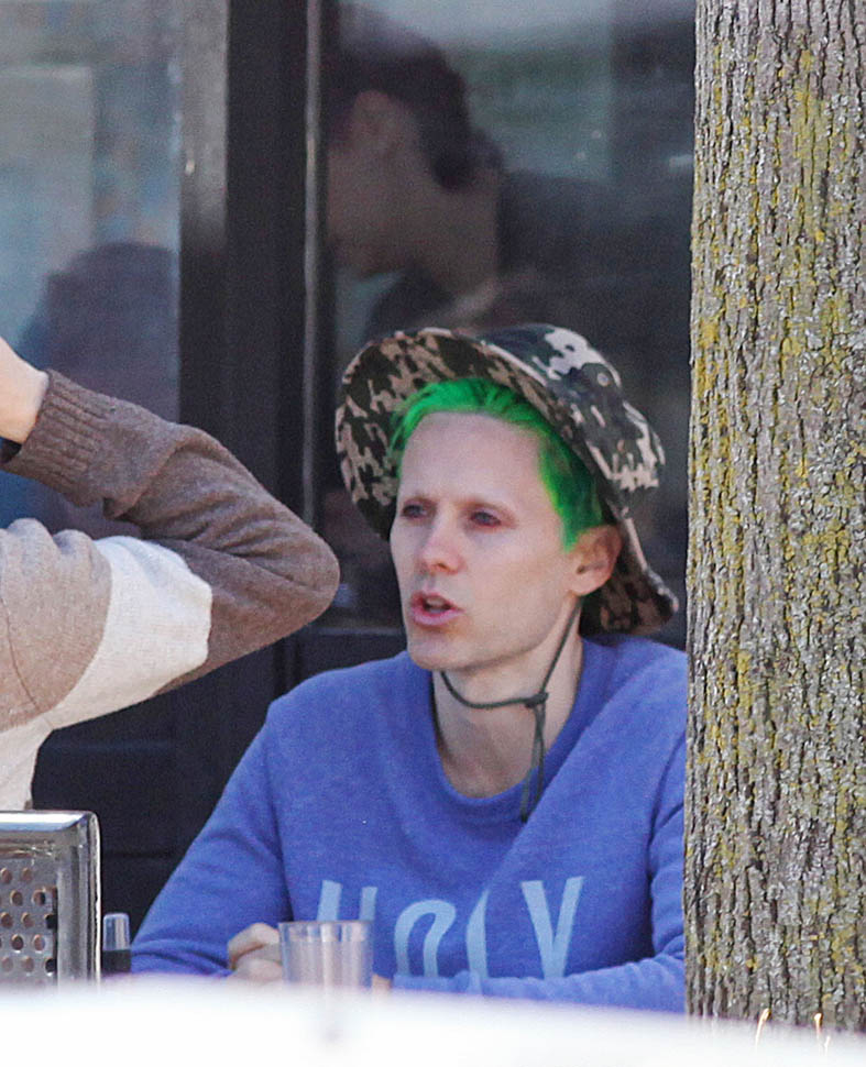 Jared Leto and the cast of the Suicide Squad have been in Toronto a few weeks now. It’s finally warmer in Toronto. The day I left it was gorgeous. And I heard it was a great weekend. Which is when these shots were taken of Jared and his friends hanging out Saturday afternoon.