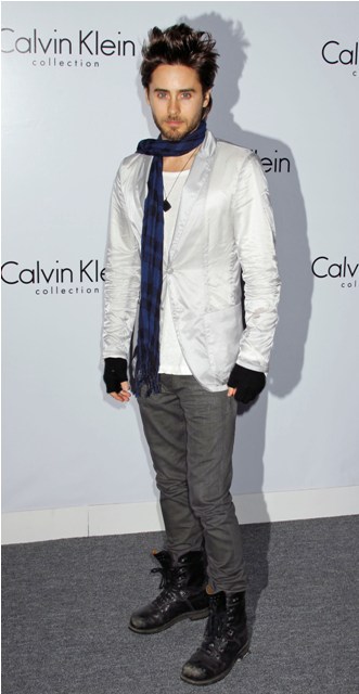 Jared Leto is no accident. From the gel and the eyeliner to the scarf and the shiny blazer, this is a vain twat scrambling to find salvation from the ruins of an Ebola infestation. And failing miserably. Because it’s totally contrived. And completely incongruous to his other identity, that of badass fringe punk rocker with a f-ck you attitude toward conformity, convention, and the mainstream. Bitch, you’re making love to your own hair. Do you know who you are?