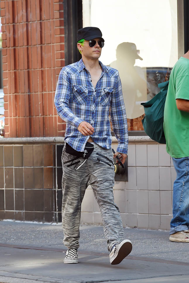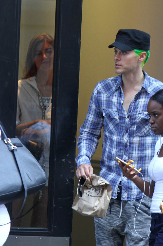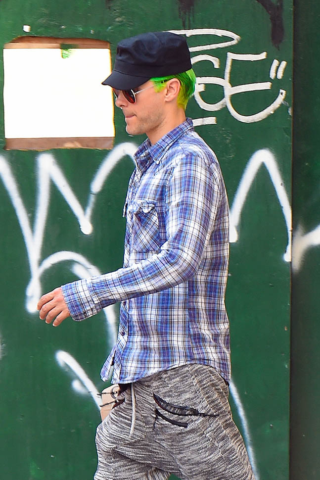 As you can see, Jared’s wearing his hair green, for the Joker. I would like to wear his entire outfit, because those pants look SO comfortable. In fact, right now, I find him hotter than he’s been in a year. Jesus Jared never worked for me. He has suuuuuuch a pretty face. Why wouldn’t you want to see more of that face?