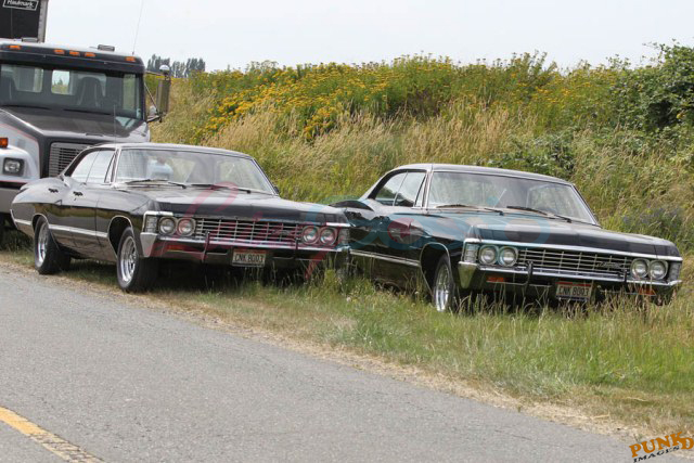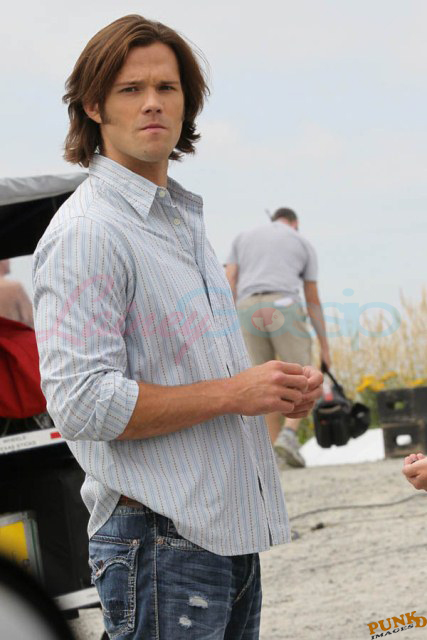For now then, for you Supernatural fans, as promised whenever there are new photos - here’s Jared Padalecki on the set yesterday with two Impalas, and supposedly that’s like a big deal now, this car, in terms of show significance? Do they each drive one? Is that like wearing matching sweaters?