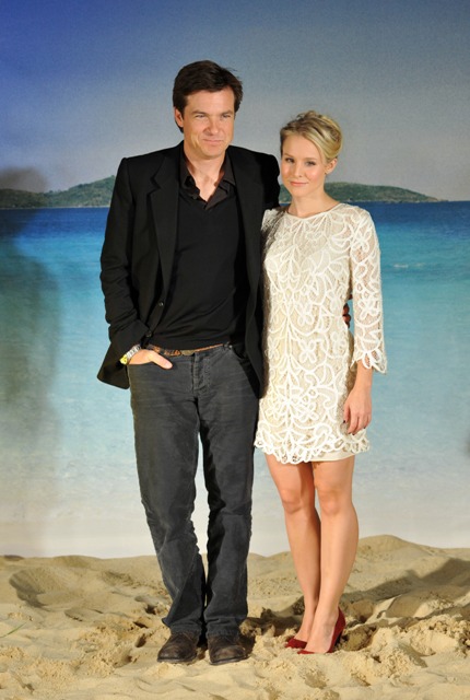 Jason was with his Couples Retreat co-stars in London today at a photocall to promote the film. Look how handsome. Jason Bateman and Rob Lowe. They never age, do they? It’s the genes.