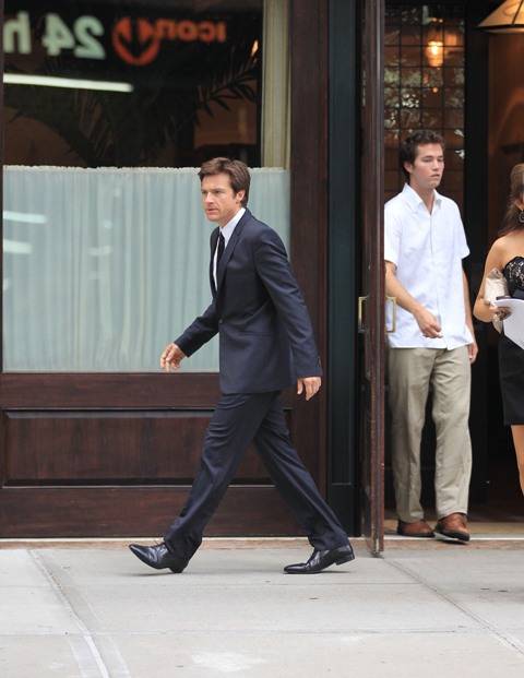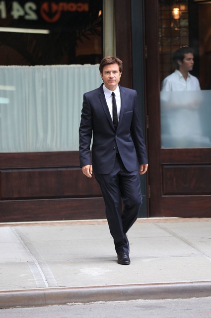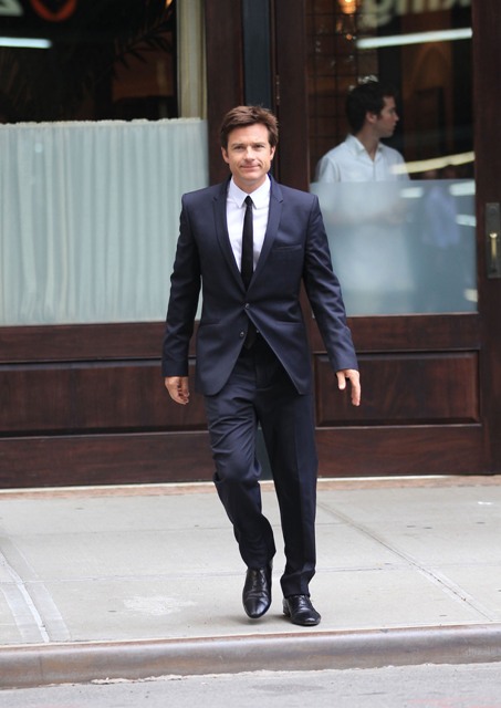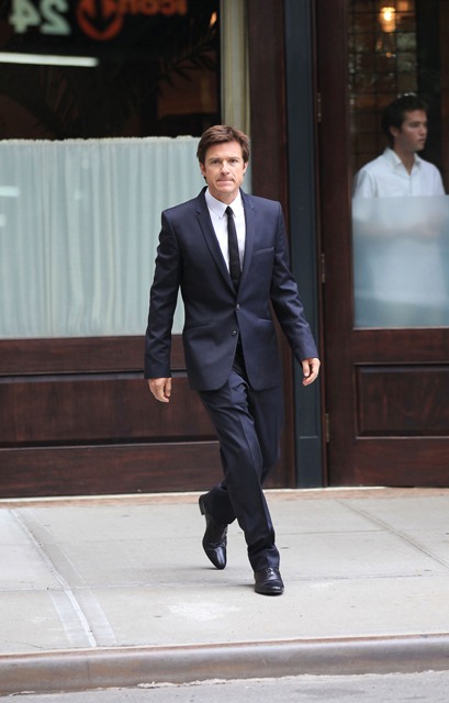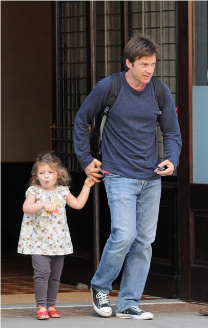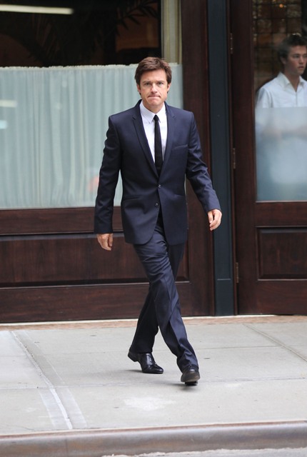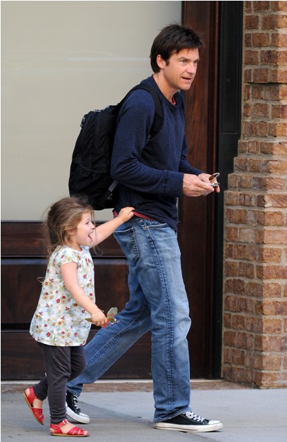 Here’s Jason in New York a couple of days ago walking around looking adorable in a suit, and out again today with his daughter Francesca.