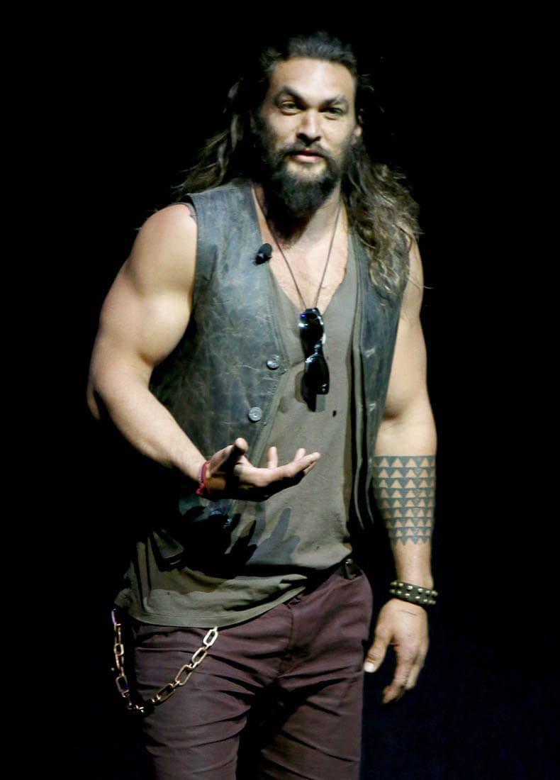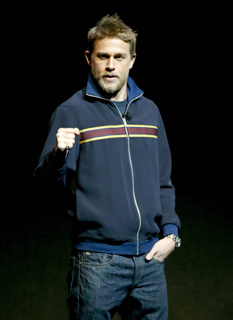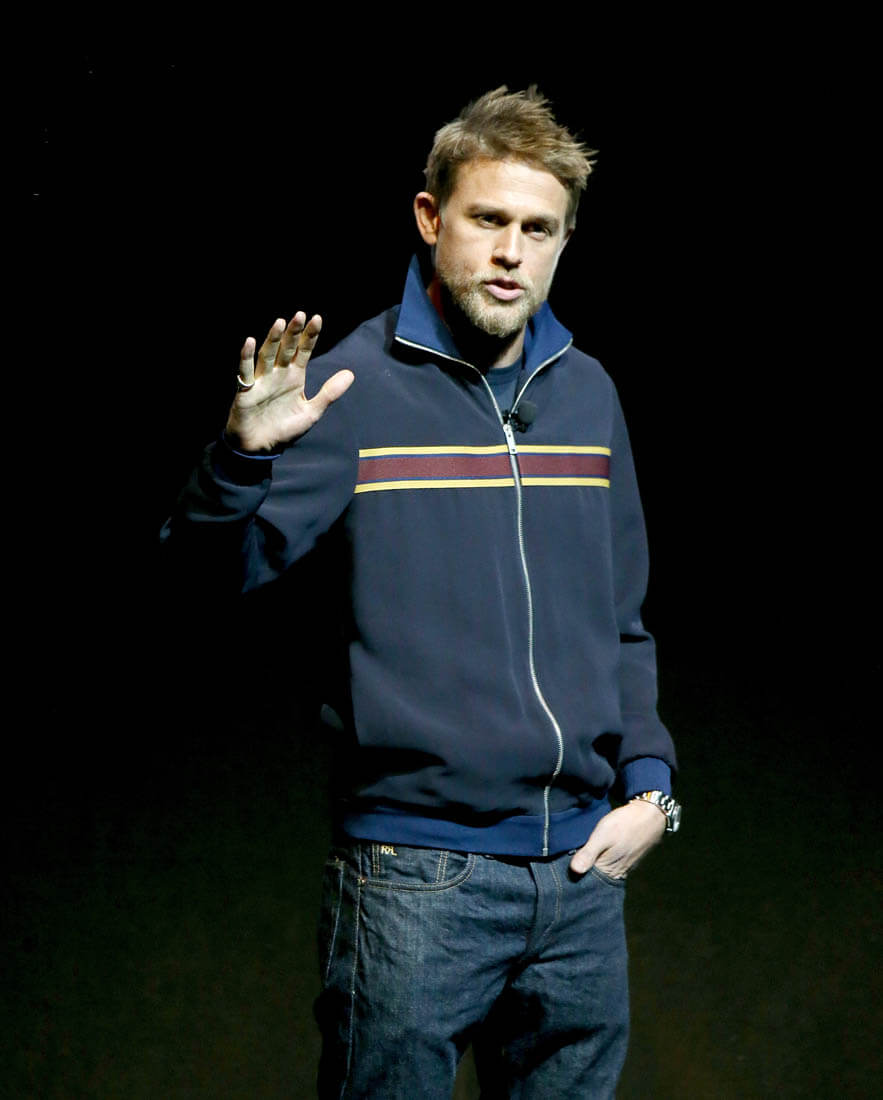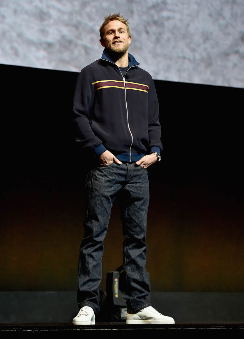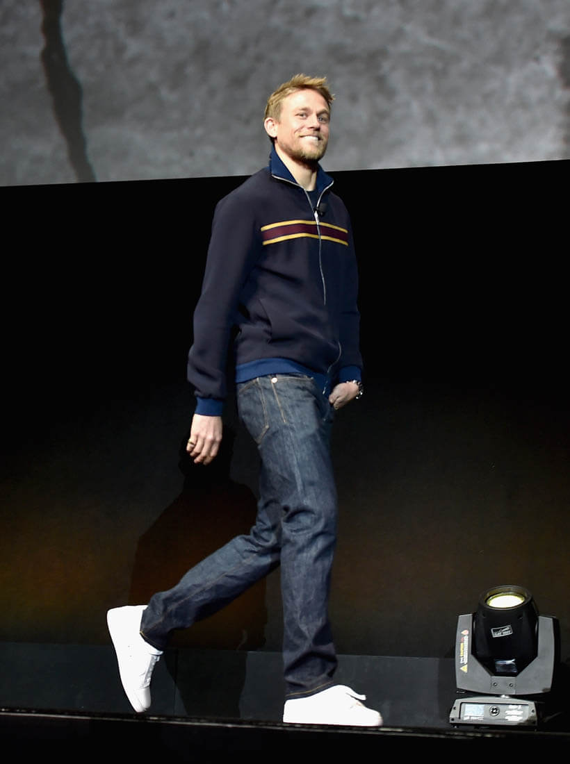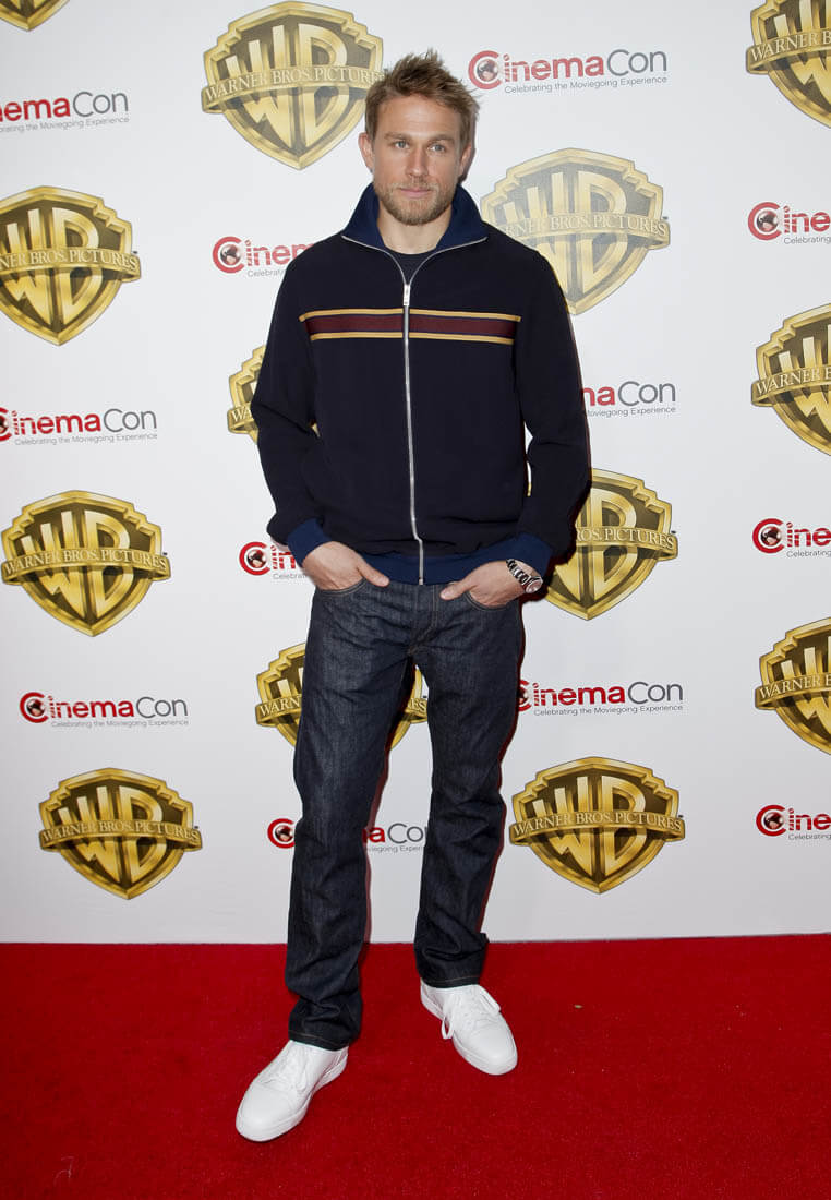 As you can see, Charlie’s brought his chin lift back. I used to complain about Charlie’s chin lift every time he posed for pictures. Because, while he’s hot from all angles, the chin lift is not his best angle. I wonder though if we need to give him a pass this time. Because of all the dick-swinging. Jason Momoa is not a small man. He’s massive. He’s a mountain. And when you stand next to him you can’t help but get corny and imagine climbing him. He brings out the primitive in you. I swear when I met him I immediately wanted to be in peril, so that I could be rescued. So I feel like Charlie’s chin is compensating for the fact that Jason is hulking over him, right?