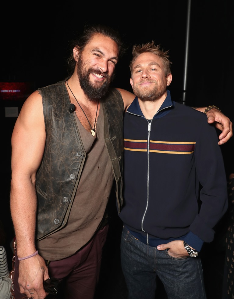 Jason Momoa was at CinemaCon yesterday with Justice League. Charlie Hunnam was there in support of King Arthur: Legend Of The Sword. Both movies are Warner Bros properties. Charlie is also CinemaCon’s Star of the Year. Fine, whatever. The point of this post is that at some point they posed for pictures together. How will we work the rest of the day? Did they just f-ck up our entire day?