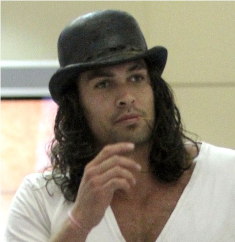 This is not the first time I’ve seen Jason in a hat. He was all over Comic-Con with a hat. Saw him at the Lionsgate party with a top hat, tips, and a lot of black eyeliner. He is just as massive in real life as you’d expect him to be from Game of Thrones. And Conan. That night he seemed like he’d had a few. Rolled in with a wingman and wasn’t very steady on his feet. I’m not saying he was Lohan and about to faceplant or out of control or anything. Just... it wasn’t entirely a straight line. He does have the air of a total boss about him though but not in a super arrogant way and I remember thinking to myself, when you look like that, such an imposing figure, what’s the alternative to moving like a total boss? What would it look like if Jason Momoa were to skulk into a room like a timid wretch? Whatever. The point is the man is an impressive physical presence, and they are trying to bank on that with Conan next week. Everyone at that party kept telling me it’s a great movie. Of course that’s what they’re paid to do. I do think that there is an audience for it though. To me, it makes more sense for him to have an audience in that genre than, say, Gerard Butler.