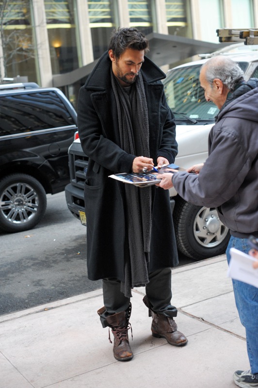 I think he might be in that new Sly Stallone movie? Bullet To The Head? Anyway, he's been doing some press in New York. God that is something to look at. What's his secret?