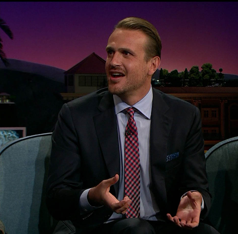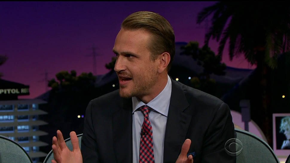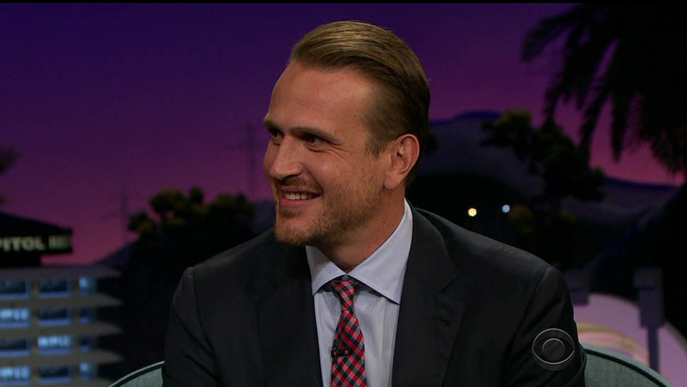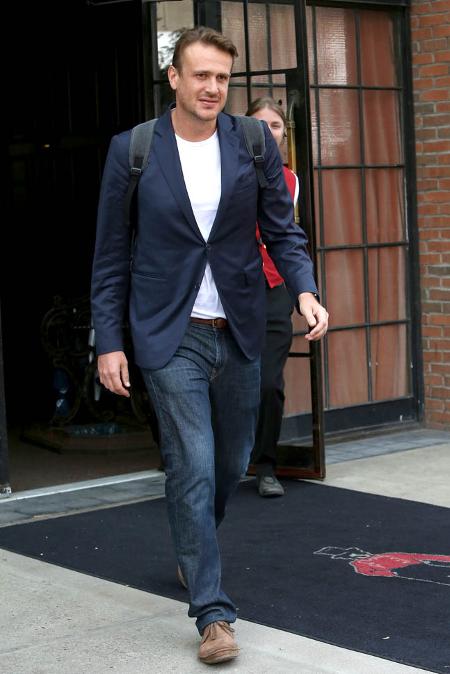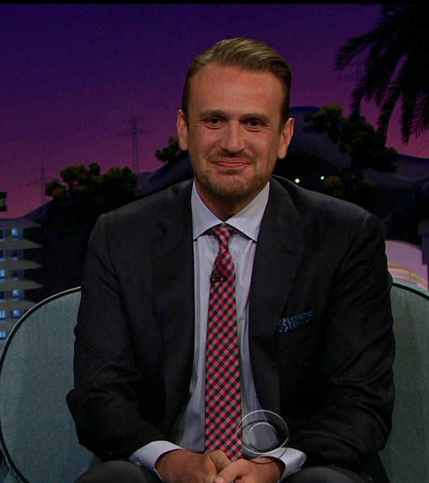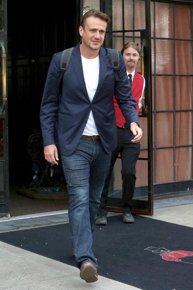 Attached - Jason Segel on The Late Late Show with James Corden the other day, and out in New York last week.