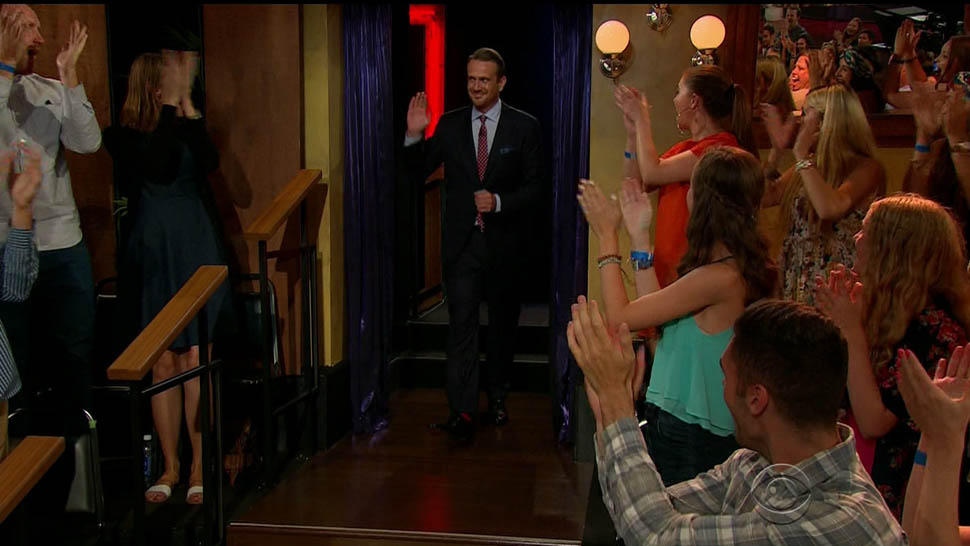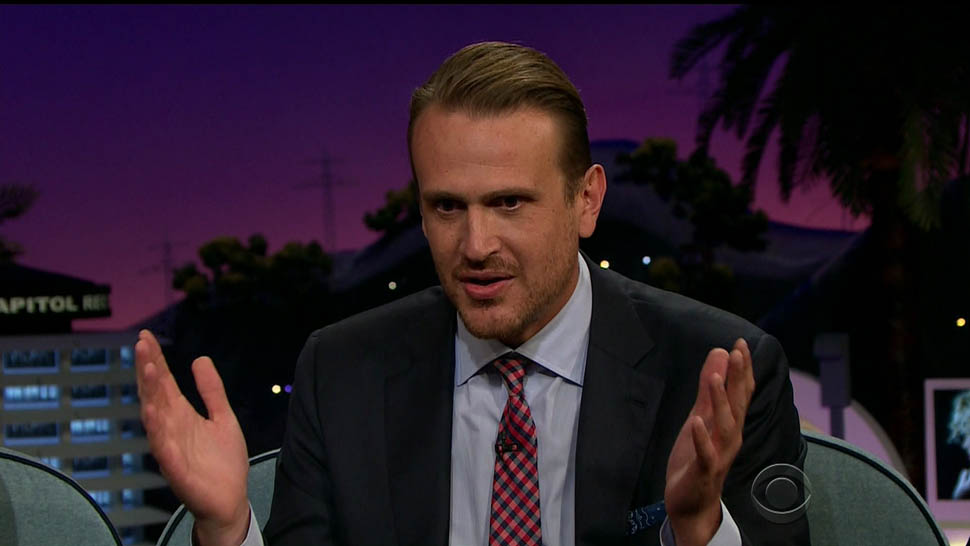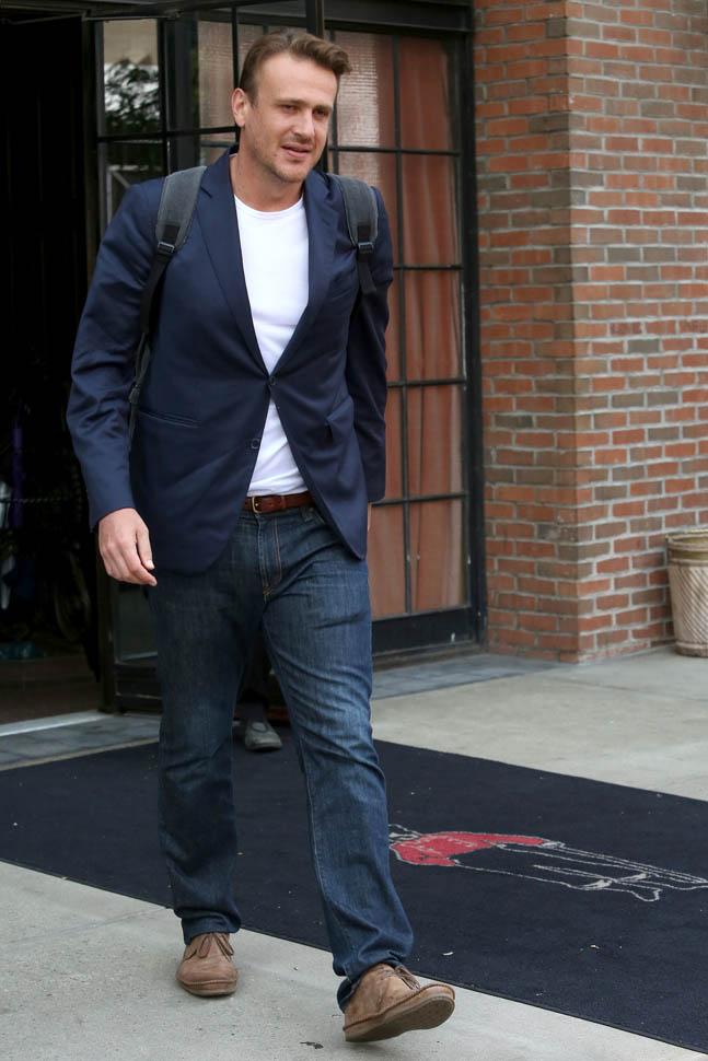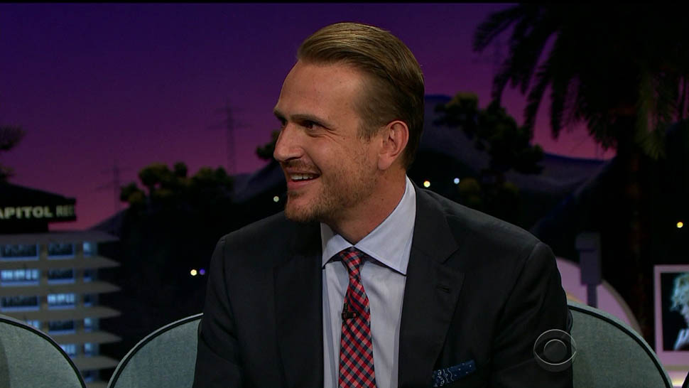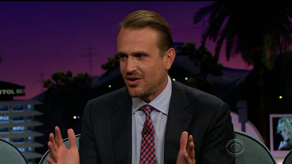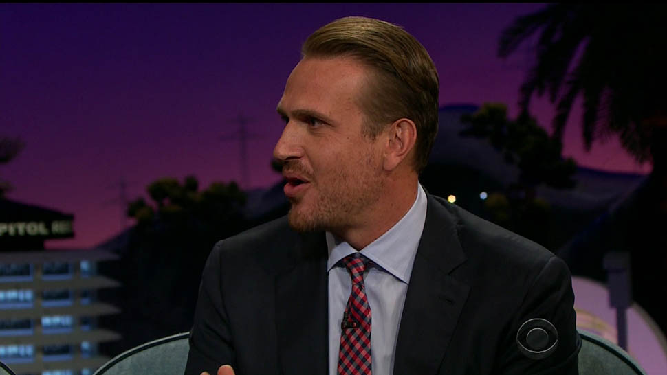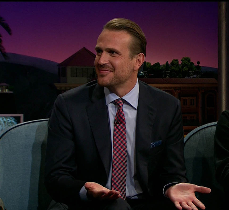 Attached - Jason Segel on The Late Late Show with James Corden the other day, and out in New York last week.