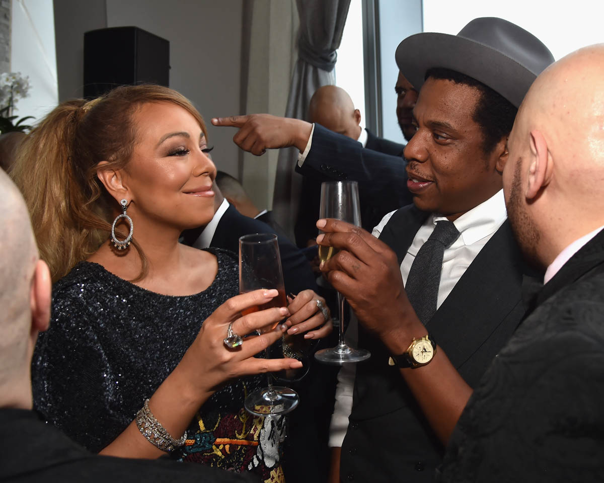 First, there was the Roc Nation brunch on Saturday. Jay hosted the annual pre-Grammy event at the top of the World Trade Center. Mariah Carey, Jennifer Hudson, Diddy, DJ Khaled, Jaden Smith, Remy Ma, Nick Jonas and Iggy Azalea (why?) were there. I don’t understand the dress code for this brunch. Bey and Jay look like they’re going to an Inauguration Ball. There are pictures of Jay and Bey greeting celebrities like royalty or, you know, the Obamas.