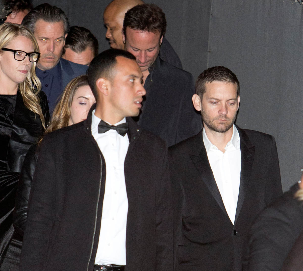 Here are Mindy Kaling, BJ Novak, Tracee Ellis Ross, Lana Del Rey, and Tobey Maguire leaving Jay-Z's Oscar party in LA.
